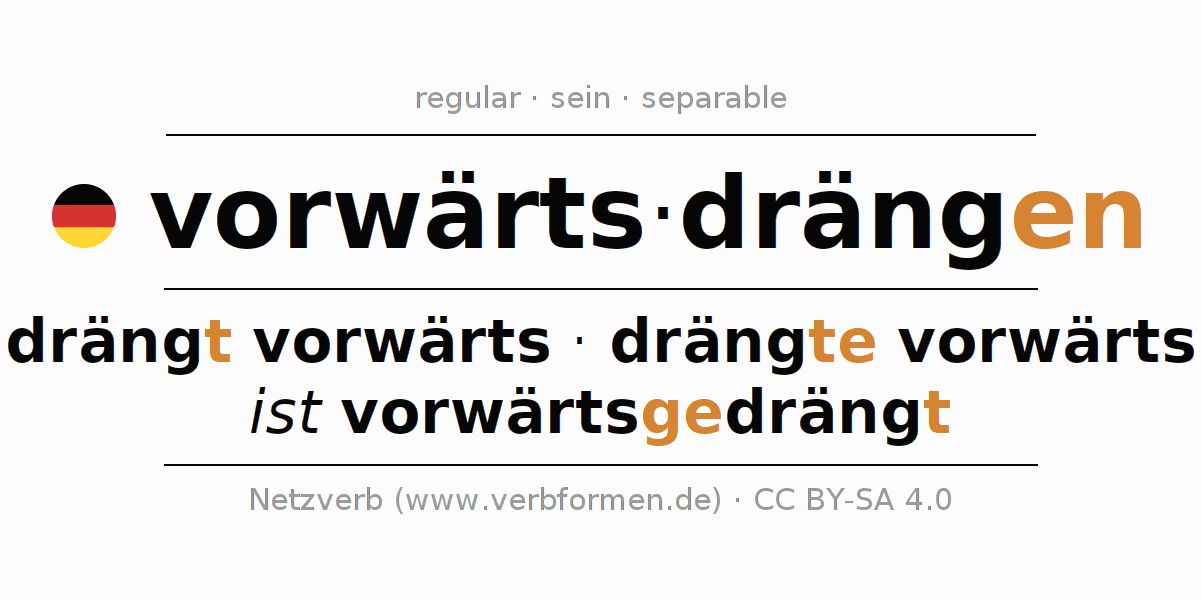 | ich | dräng(e) vorwärts | drängte vorwärts | dränge vorwärts | drängte vorwärts | - |