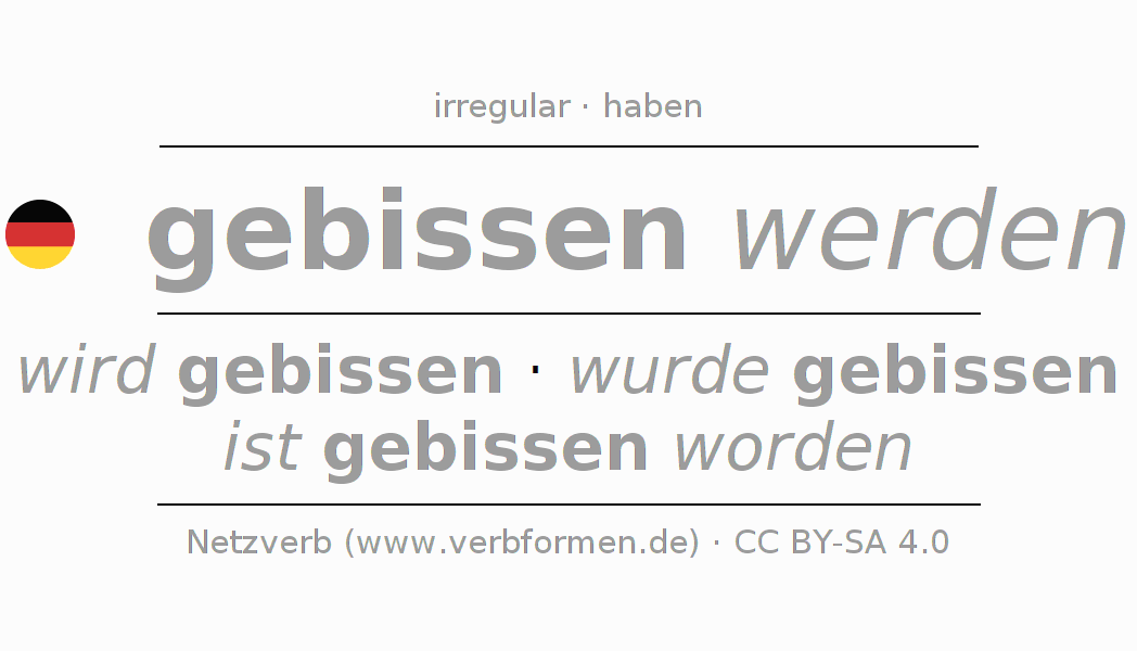 - Pretérito: ich würde gebissen, du würdest gebissen, er würde gebissen, wir würden gebissen, ihr würdet gebissen, sie würden gebissen