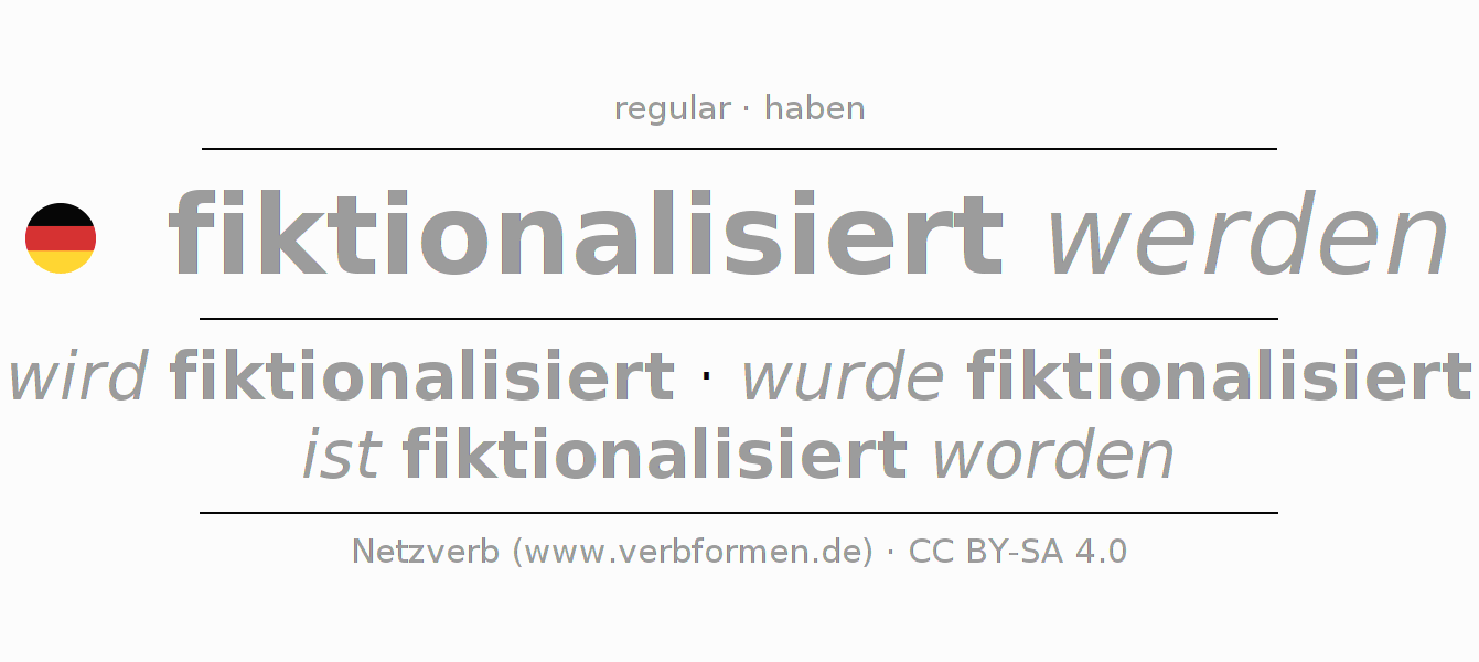 er | wird fiktionalisiert | wurde fiktionalisiert | werde fiktionalisiert | würde fiktionalisiert | - |