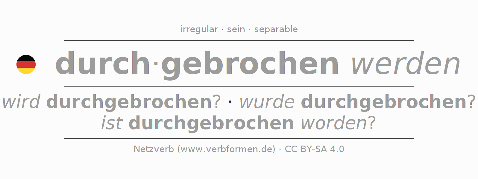 | ich | werde durchgebrochen? | wurde durchgebrochen? | werde durchgebrochen? | würde durchgebrochen? | - |