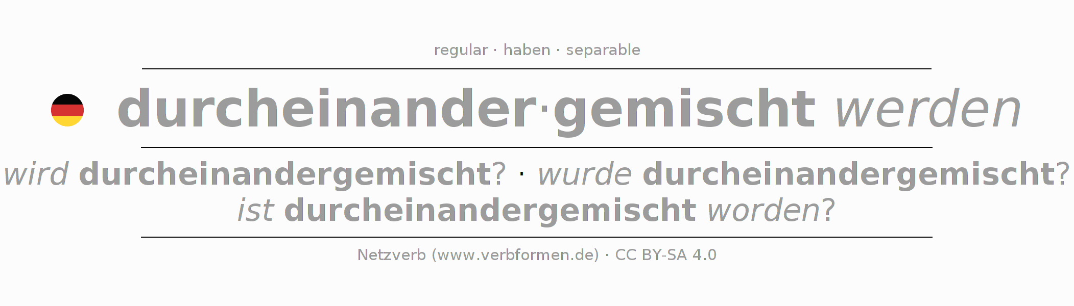 wird durcheinandergemischt? · wurde durcheinandergemischt? · ist durcheinandergemischt worden?