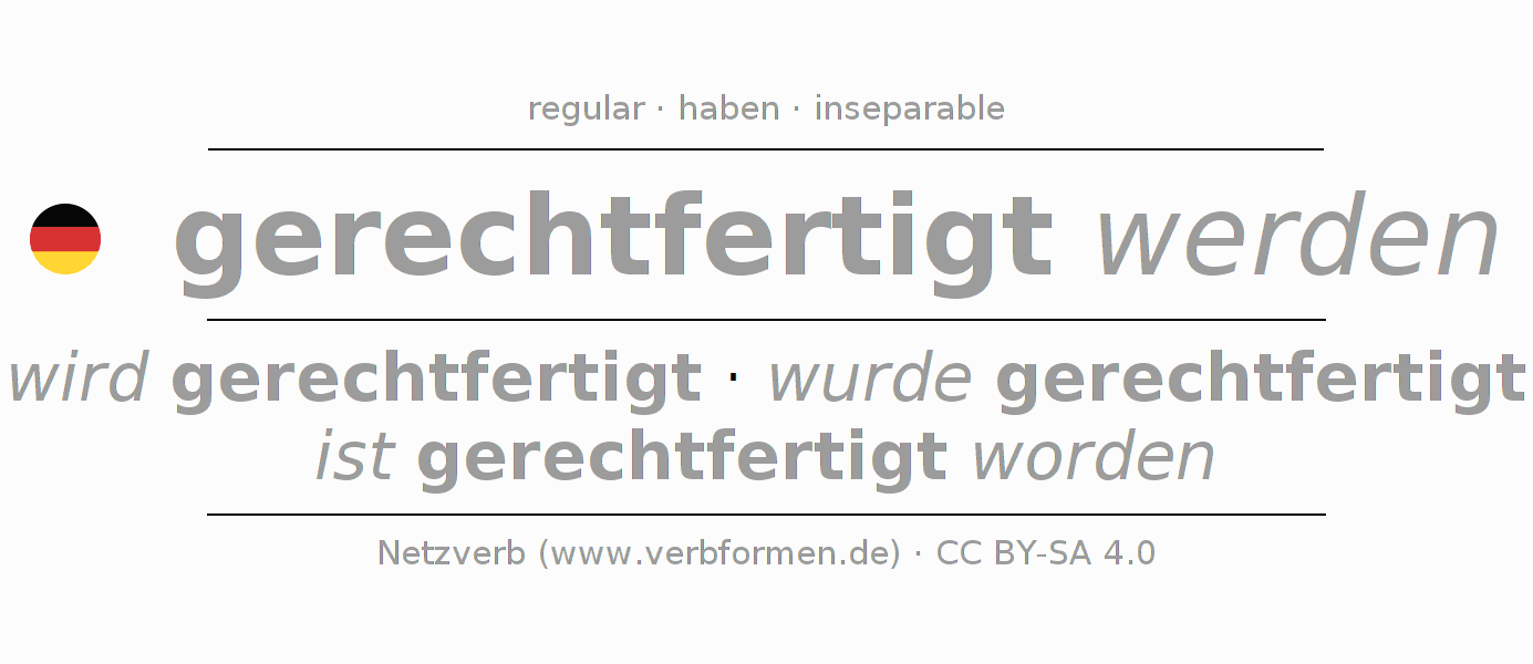 wird gerechtfertigt · wurde gerechtfertigt · ist gerechtfertigt worden