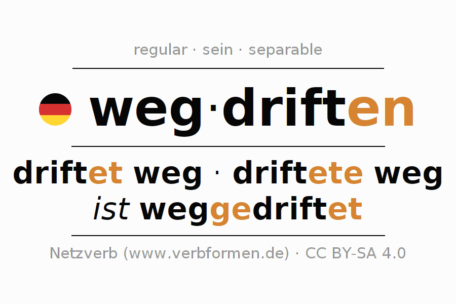 - Presente: drift(e) (du) weg, driften wir weg, driftet (ihr) weg, driften Sie weg