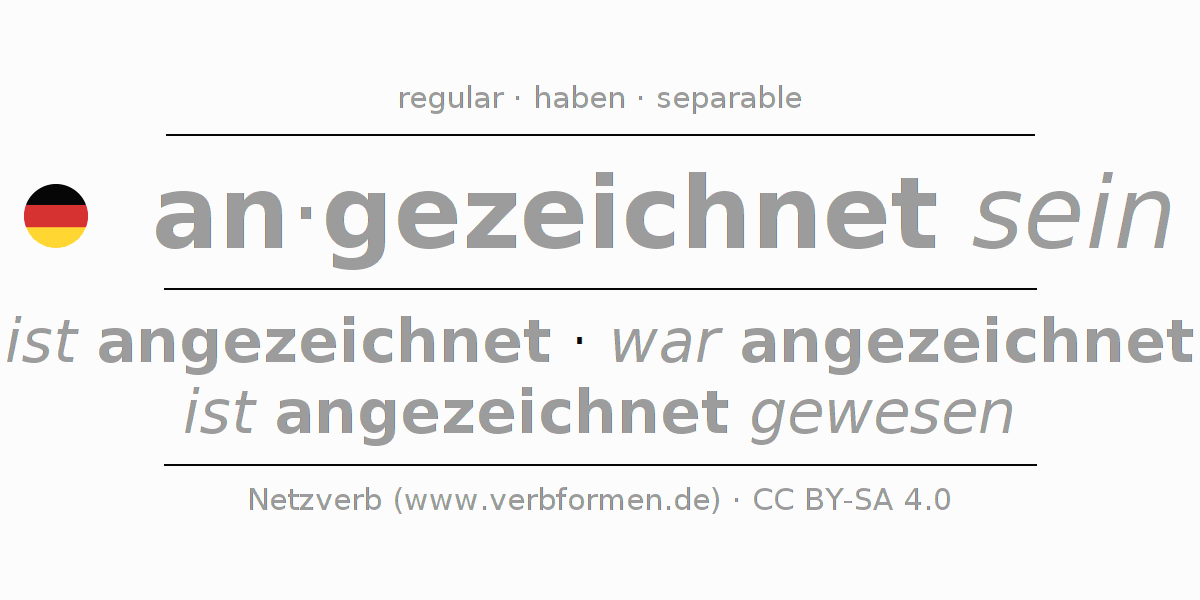 ist angezeichnet · war angezeichnet · ist angezeichnet gewesen