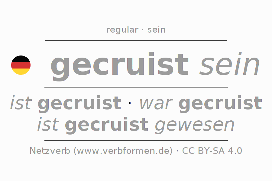 - Pasado perfecto: ich bin gecruist gewesen, du bist gecruist gewesen, er ist gecruist gewesen, wir sind gecruist gewesen, ihr seid gecruist gewesen, sie sind gecruist gewesen