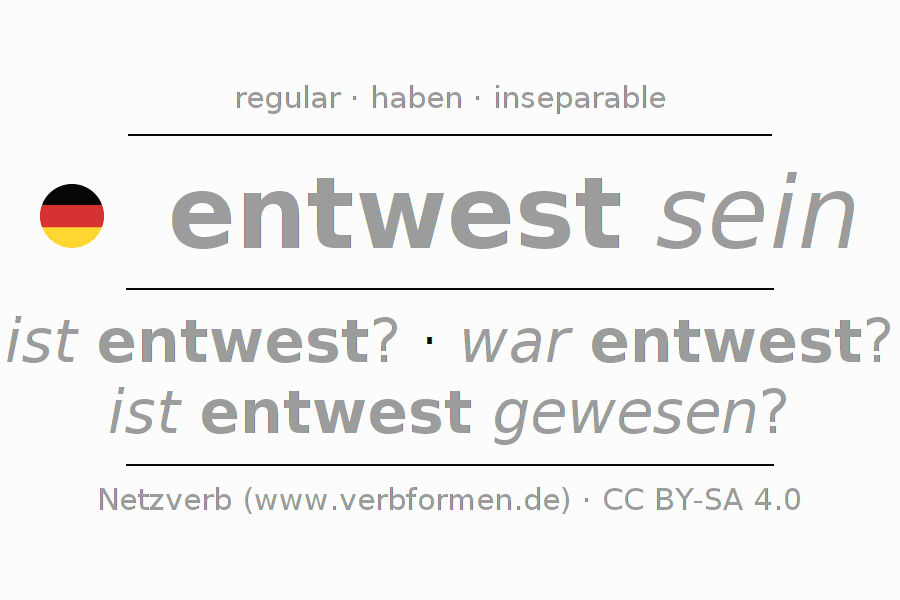 - Pasado perfecto: bin ich entwest gewesen?, bist du entwest gewesen?, ist er entwest gewesen?, sind wir entwest gewesen?, seid ihr entwest gewesen?, sind sie entwest gewesen?