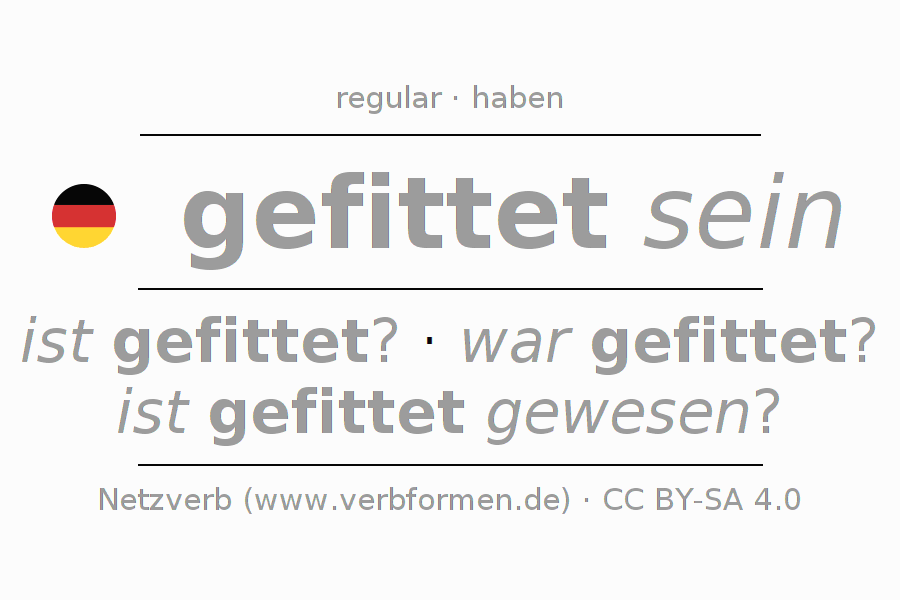 - Pretérito: war ich gefittet?, warst du gefittet?, war er gefittet?, waren wir gefittet?, wart ihr gefittet?, waren sie gefittet?
