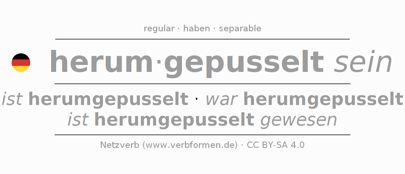 ist herumgepusselt · war herumgepusselt · ist herumgepusselt gewesen