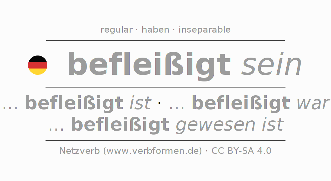 - Presente: sei (du) befleißigt, seien wir befleißigt, seid (ihr) befleißigt, seien Sie befleißigt