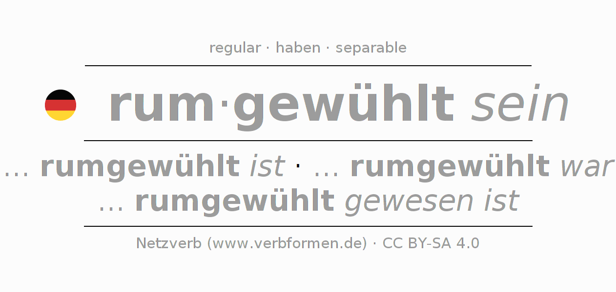 - Infinitivo II: rumgewühlt gewesen sein, rumgewühlt gewesen zu sein