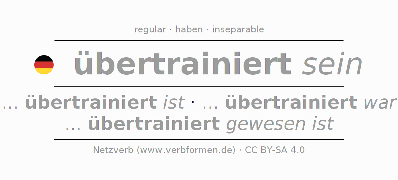 - Presente: ... ich übertrainiert bin, ... du übertrainiert bist, ... er übertrainiert ist, ... wir übertrainiert sind, ... ihr übertrainiert seid, ... sie übertrainiert sind