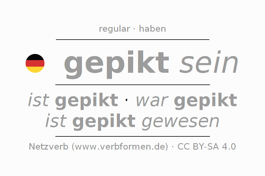 - Presente: ich bin gepikt, du bist gepikt, er ist gepikt, wir sind gepikt, ihr seid gepikt, sie sind gepikt