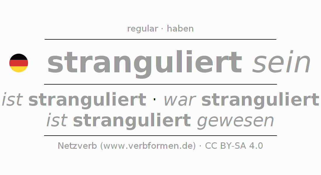 | ich | bin stranguliert | war stranguliert | sei stranguliert | wäre stranguliert | - |