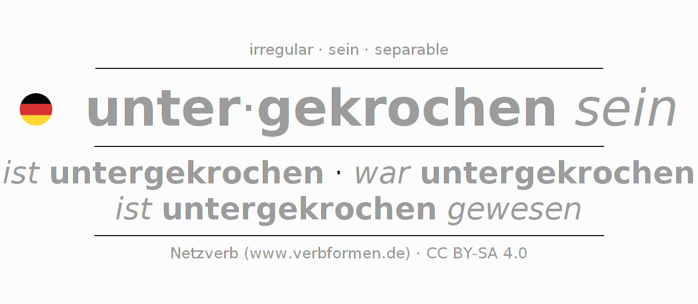 ist untergekrochen · war untergekrochen · ist untergekrochen gewesen
