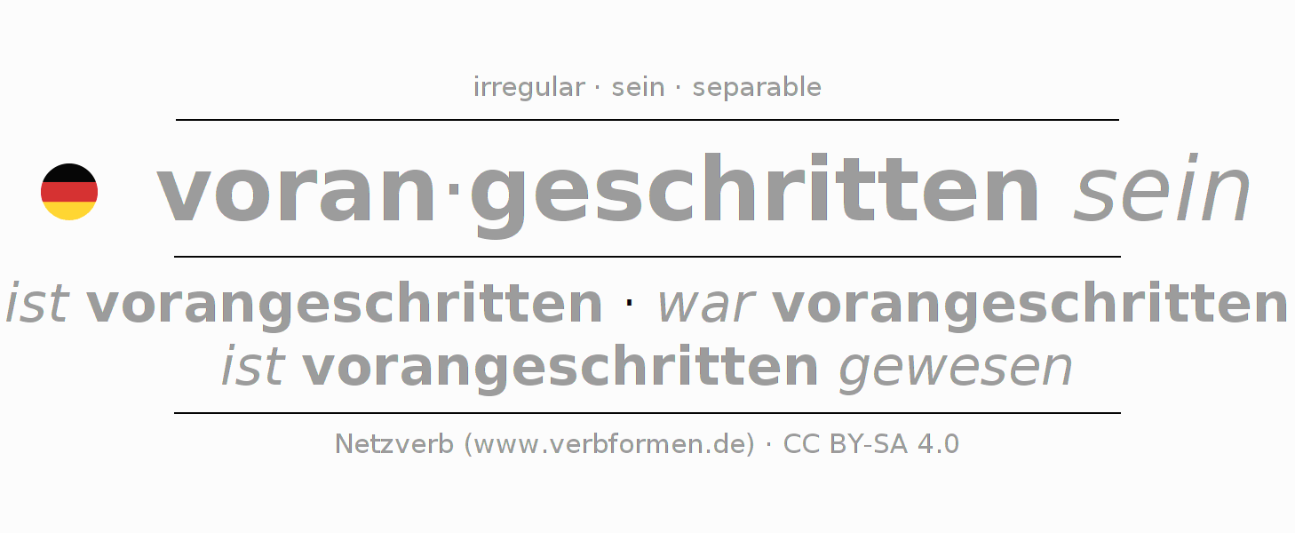 ist vorangeschritten · war vorangeschritten · ist vorangeschritten gewesen