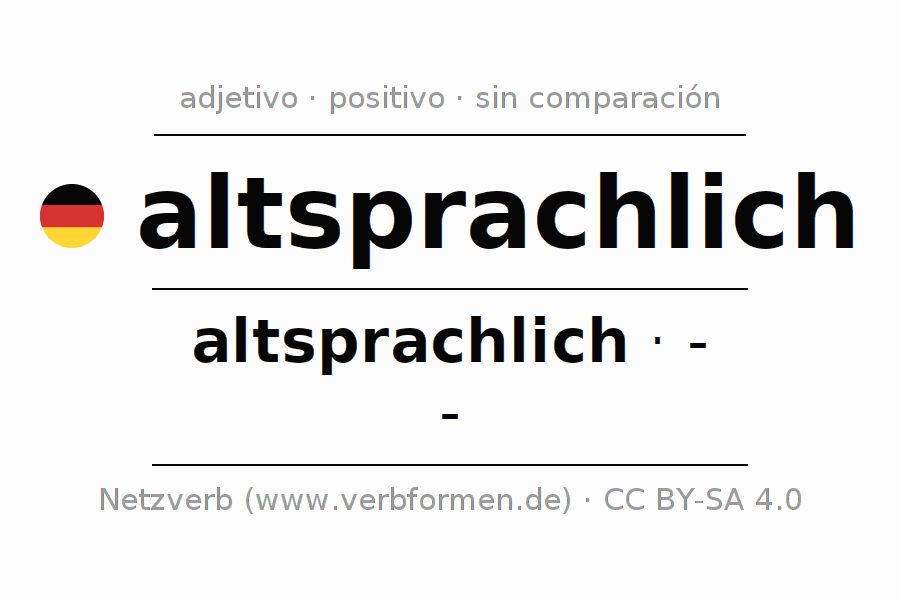 El adjetivo altsprachlich se declina (antiguas lenguas) utilizando la construcción altsprachlich, la cual no puede ser exaltada, es decir este adjetivo no permite formas del comparativo o superlativo. El adjetivo altsprachlich puede ser utilizado de forma atributiva en frente de un sustantivo así como de forma predicativa en conjunto con un verbo.Aquí puedes declinar y comparar no solamente altsprachlich sino también todos los adjetivos alemanes. Comentarios ☆