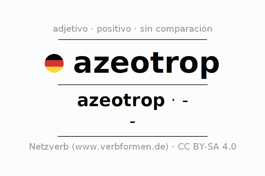 El comparativo en forma de tabla con todas sus formas de declinación: fuerte, débil y mixta. Estas están representadas de forma clara en una tabla sinópica en singular, plural y en los cuatro casos gramaticales: nominativo (primer caso), genitivo (segundo caso), dativo (tercer caso) y acusativo (cuarto caso). Aquí encontraras más información acerca del tema Wiktionary azeotrop y aquí también a través del Duden azeotrop.
