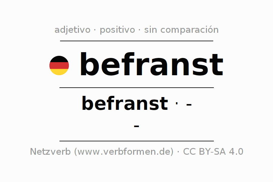 El adjetivo befranst se declina (con flecos) utilizando la construcción befranst, la cual no puede ser exaltada, es decir este adjetivo no permite formas del comparativo o superlativo. El adjetivo befranst puede ser utilizado de forma atributiva en frente de un sustantivo así como de forma predicativa en conjunto con un verbo.Aquí puedes declinar y comparar no solamente befranst sino también todos los adjetivos alemanes. Comentarios ☆