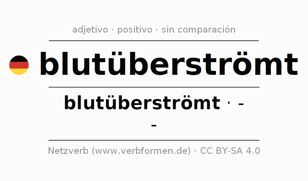 El comparativo en forma de tabla con todas sus formas de declinación: fuerte, débil y mixta. Estas están representadas de forma clara en una tabla sinópica en singular, plural y en los cuatro casos gramaticales: nominativo (primer caso), genitivo (segundo caso), dativo (tercer caso) y acusativo (cuarto caso). Aquí encontraras más información acerca del tema Wiktionary blutüberströmt y aquí también a través del Duden blutüberströmt.