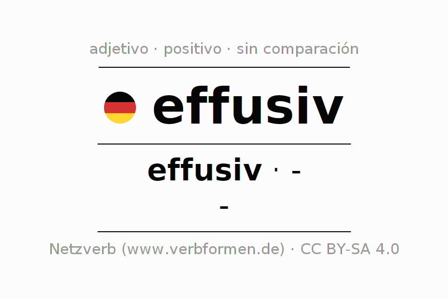 El adjetivo effusiv se declina (efusivo, exuberante) utilizando la construcción effusiv, la cual no puede ser exaltada, es decir este adjetivo no permite formas del comparativo o superlativo. El adjetivo effusiv puede ser utilizado de forma atributiva en frente de un sustantivo así como de forma predicativa en conjunto con un verbo.Aquí puedes declinar y comparar no solamente effusiv sino también todos los adjetivos alemanes. Comentarios ☆