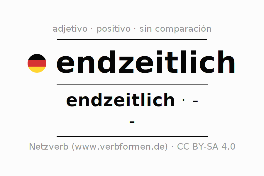 El comparativo en forma de tabla con todas sus formas de declinación: fuerte, débil y mixta. Estas están representadas de forma clara en una tabla sinópica en singular, plural y en los cuatro casos gramaticales: nominativo (primer caso), genitivo (segundo caso), dativo (tercer caso) y acusativo (cuarto caso). Aquí encontraras más información acerca del tema Wiktionary endzeitlich y aquí también a través del Duden endzeitlich.