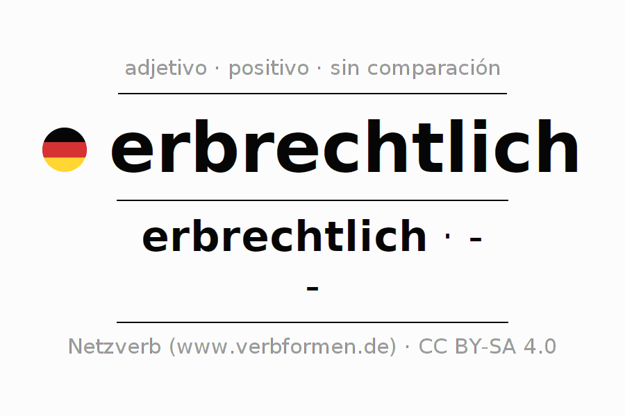 El adjetivo erbrechtlich se declina (hereditario, sucesorio) utilizando la construcción erbrechtlich, la cual no puede ser exaltada, es decir este adjetivo no permite formas del comparativo o superlativo. El adjetivo erbrechtlich puede ser utilizado de forma atributiva en frente de un sustantivo así como de forma predicativa en conjunto con un verbo.Aquí puedes declinar y comparar no solamente erbrechtlich sino también todos los adjetivos alemanes. Comentarios ☆