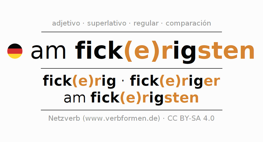 - Femenino: eine fick(e)rigste, einer fick(e)rigsten, einer fick(e)rigsten, eine fick(e)rigste