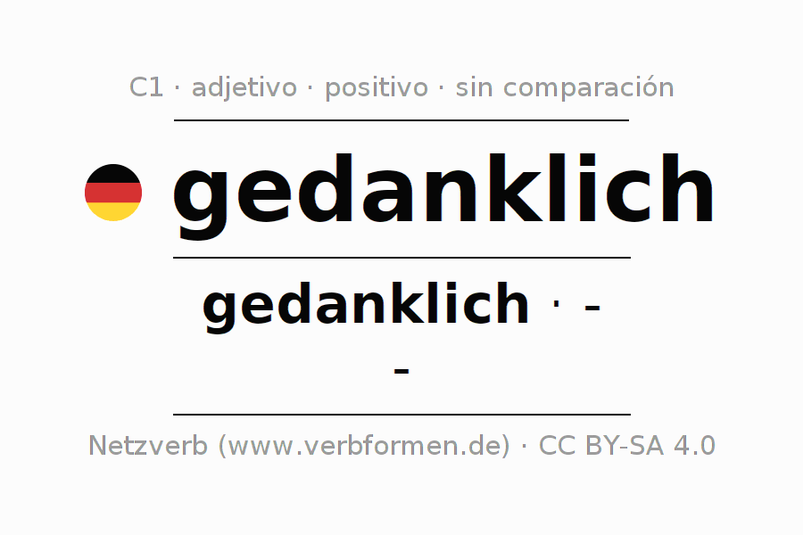 El adjetivo gedanklich se declina (cognitivo, mental) utilizando la construcción gedanklich, la cual no puede ser exaltada, es decir este adjetivo no permite formas del comparativo o superlativo. El adjetivo gedanklich puede ser utilizado de forma atributiva en frente de un sustantivo así como de forma predicativa en conjunto con un verbo.Aquí puedes declinar y comparar no solamente gedanklich sino también todos los adjetivos alemanes. Comentarios ☆