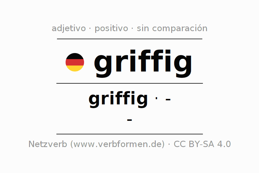 El comparativo en forma de tabla con todas sus formas de declinación: fuerte, débil y mixta. Estas están representadas de forma clara en una tabla sinópica en singular, plural y en los cuatro casos gramaticales: nominativo (primer caso), genitivo (segundo caso), dativo (tercer caso) y acusativo (cuarto caso). Aquí encontraras más información acerca del tema Wiktionary griffig y aquí también a través del Duden griffig.