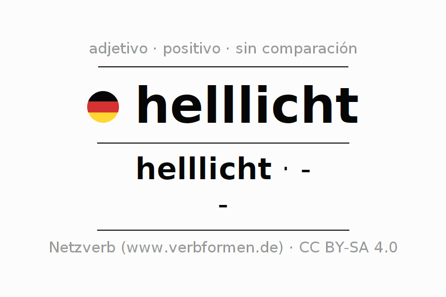 El comparativo en forma de tabla con todas sus formas de declinación: fuerte, débil y mixta. Estas están representadas de forma clara en una tabla sinópica en singular, plural y en los cuatro casos gramaticales: nominativo (primer caso), genitivo (segundo caso), dativo (tercer caso) y acusativo (cuarto caso). Aquí encontraras más información acerca del tema Wiktionary helllicht y aquí también a través del Duden helllicht.