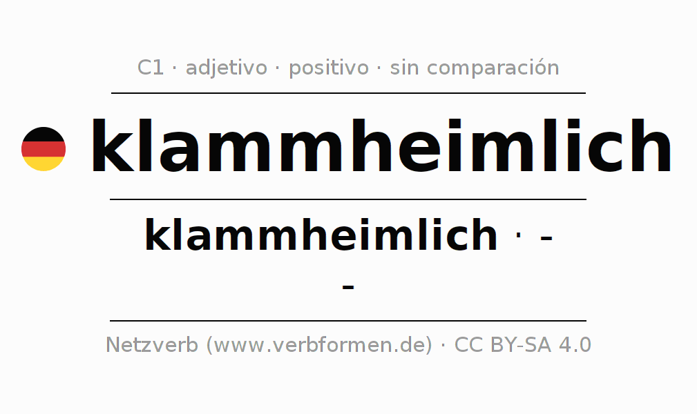 El adjetivo klammheimlich se declina (secreto, clandestina) utilizando la construcción klammheimlich, la cual no puede ser exaltada, es decir este adjetivo no permite formas del comparativo o superlativo. El adjetivo klammheimlich puede ser utilizado de forma atributiva en frente de un sustantivo así como de forma predicativa en conjunto con un verbo.Aquí puedes declinar y comparar no solamente klammheimlich sino también todos los adjetivos alemanes. Comentarios ☆