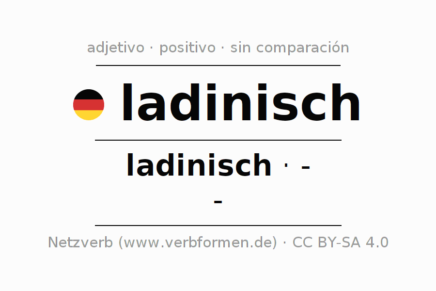 - Masculino: der ladinische, des ladinischen, dem ladinischen, den ladinischen