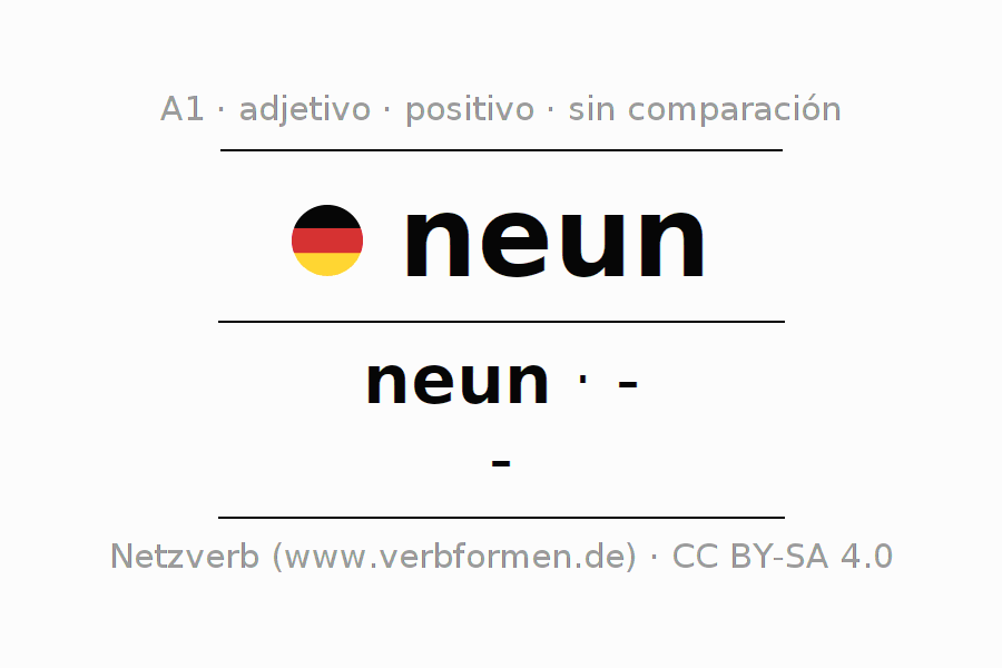 - Neutro: neun(e), neun, neun(en), neun(e)