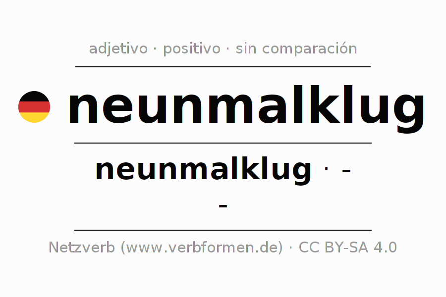 - Masculino: neunmalkluger, neunmalklugen, neunmalklugem, neunmalklugen