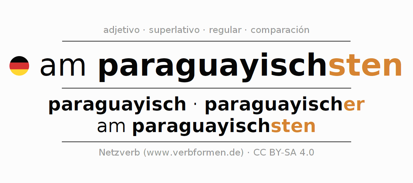 - Masculino: der paraguayischste, des paraguayischsten, dem paraguayischsten, den paraguayischsten