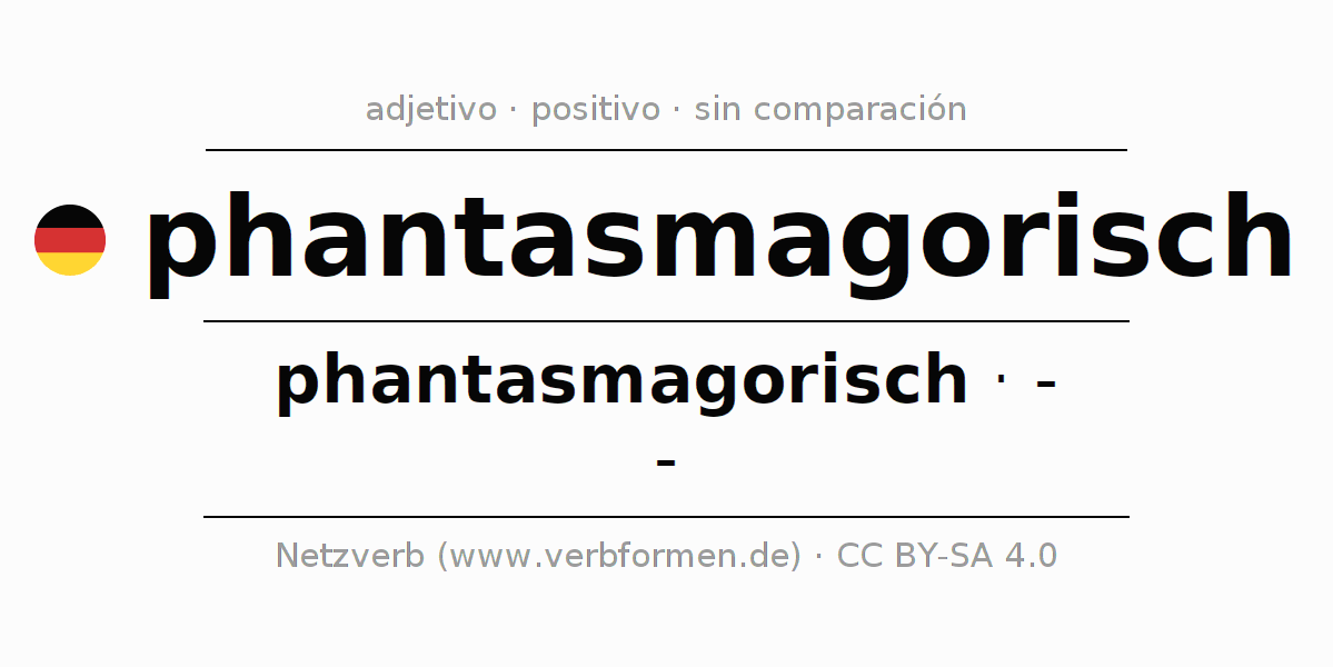 El comparativo en forma de tabla con todas sus formas de declinación: fuerte, débil y mixta. Estas están representadas de forma clara en una tabla sinópica en singular, plural y en los cuatro casos gramaticales: nominativo (primer caso), genitivo (segundo caso), dativo (tercer caso) y acusativo (cuarto caso). Aquí encontraras más información acerca del tema Wiktionary phantasmagorisch y aquí también a través del Duden phantasmagorisch.