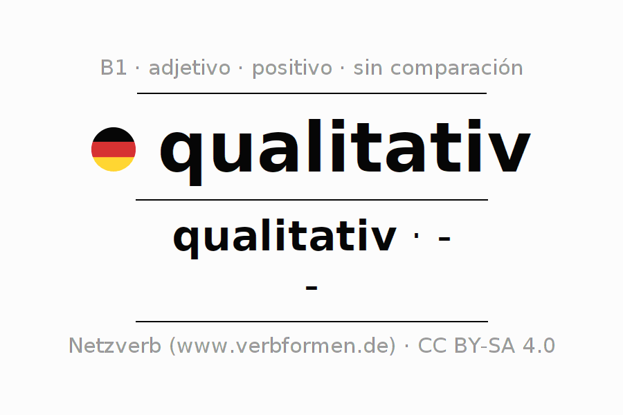 El adjetivo qualitativ se declina (cualitativo) utilizando la construcción qualitativ, la cual no puede ser exaltada, es decir este adjetivo no permite formas del comparativo o superlativo. El adjetivo qualitativ puede ser utilizado de forma atributiva en frente de un sustantivo así como de forma predicativa en conjunto con un verbo.Aquí puedes declinar y comparar no solamente qualitativ sino también todos los adjetivos alemanes. Comentarios ☆