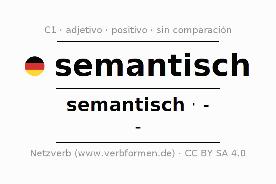 El adjetivo semantisch se declina (semántico) utilizando la construcción semantisch, la cual no puede ser exaltada, es decir este adjetivo no permite formas del comparativo o superlativo. El adjetivo semantisch puede ser utilizado de forma atributiva en frente de un sustantivo así como de forma predicativa en conjunto con un verbo.Aquí puedes declinar y comparar no solamente semantisch sino también todos los adjetivos alemanes. Comentarios ☆