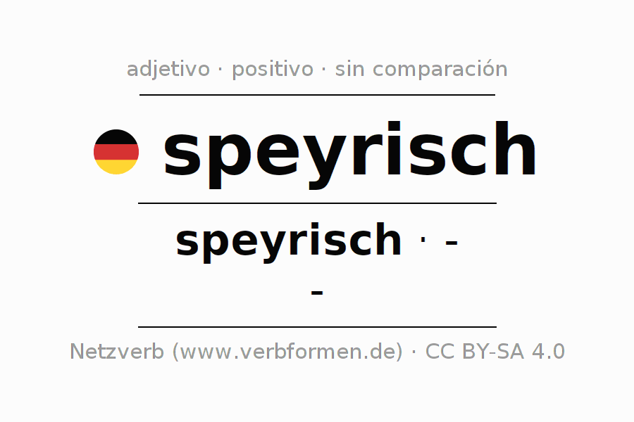 El adjetivo speyrisch se declina (de Espira, de Speyer) utilizando la construcción speyrisch, la cual no puede ser exaltada, es decir este adjetivo no permite formas del comparativo o superlativo. El adjetivo speyrisch puede ser utilizado de forma atributiva en frente de un sustantivo así como de forma predicativa en conjunto con un verbo.Aquí puedes declinar y comparar no solamente speyrisch sino también todos los adjetivos alemanes. Comentarios ☆
