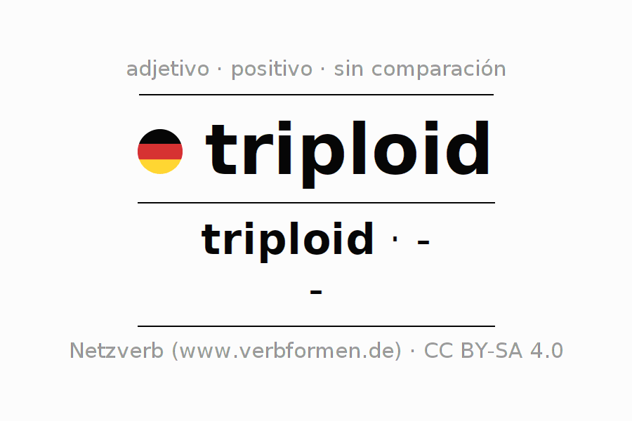 El adjetivo triploid se declina (triploide) utilizando la construcción triploid, la cual no puede ser exaltada, es decir este adjetivo no permite formas del comparativo o superlativo. El adjetivo triploid puede ser utilizado de forma atributiva en frente de un sustantivo así como de forma predicativa en conjunto con un verbo.Aquí puedes declinar y comparar no solamente triploid sino también todos los adjetivos alemanes. Comentarios ☆
