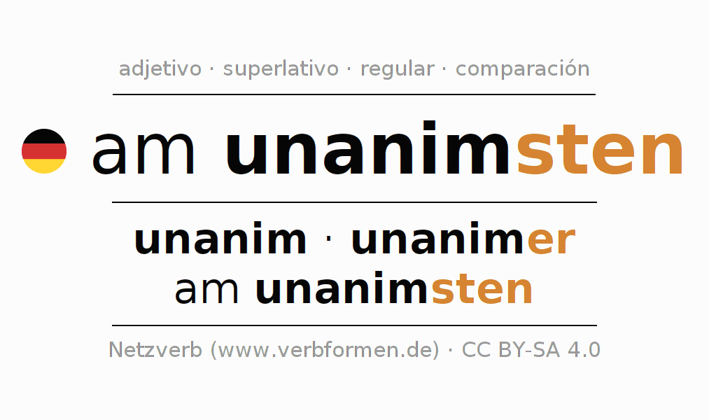- Masculino: der unanimste, des unanimsten, dem unanimsten, den unanimsten