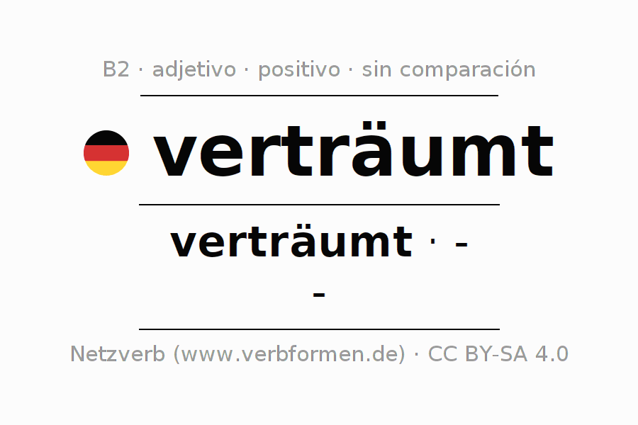 El comparativo en forma de tabla con todas sus formas de declinación: fuerte, débil y mixta. Estas están representadas de forma clara en una tabla sinópica en singular, plural y en los cuatro casos gramaticales: nominativo (primer caso), genitivo (segundo caso), dativo (tercer caso) y acusativo (cuarto caso). Aquí encontraras más información acerca del tema Wiktionary verträumt y aquí también a través del Duden verträumt.