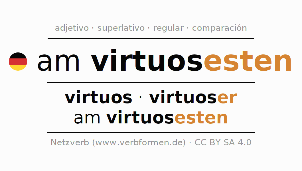 - Femenino: die virtuoseste, der virtuosesten, der virtuosesten, die virtuoseste