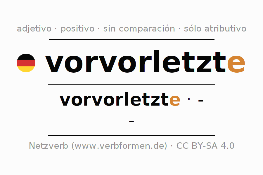 - Femenino: eine vorvorletzte, einer vorvorletzten, einer vorvorletzten, eine vorvorletzte