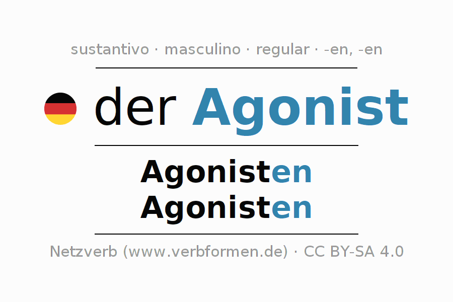 - Singular: der Agonist, des Agonisten, dem Agonisten, den Agonisten