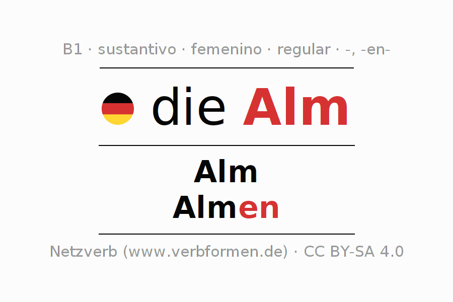 - Plural: die Almen, der Almen, den Almen, die Almen