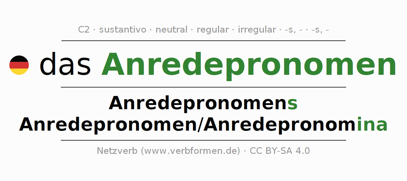 | Nom. | das Anredepronomen | die Anredepronomen/Anredepronomina |