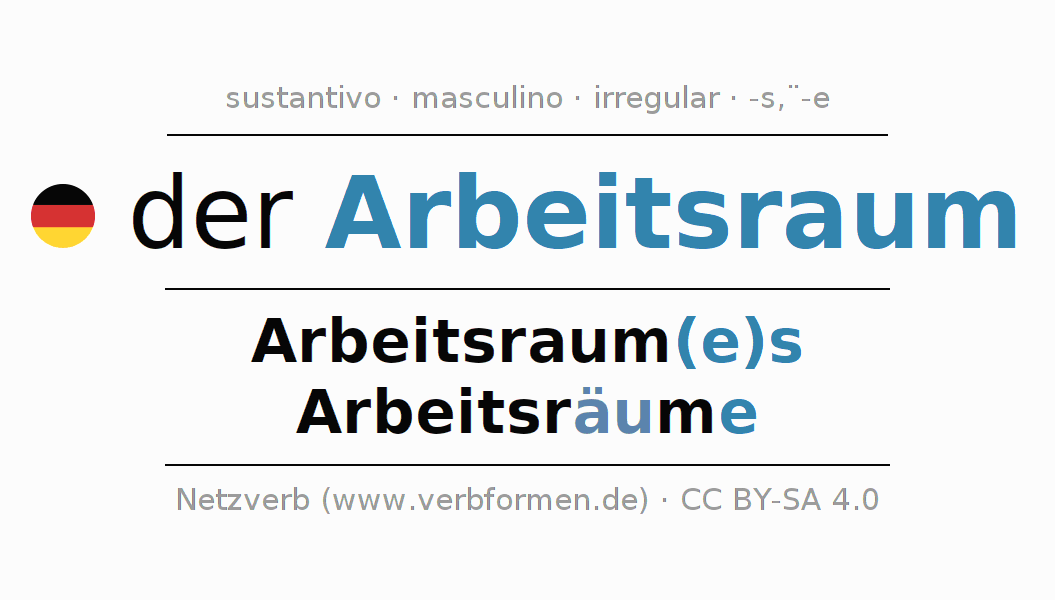 - Plural: die Arbeitsräume, der Arbeitsräume, den Arbeitsräumen, die Arbeitsräume