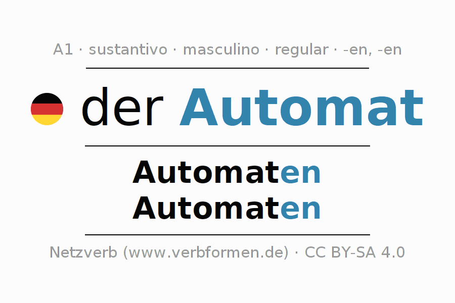 - Singular: der Automat, des Automaten, dem Automaten, den Automaten
