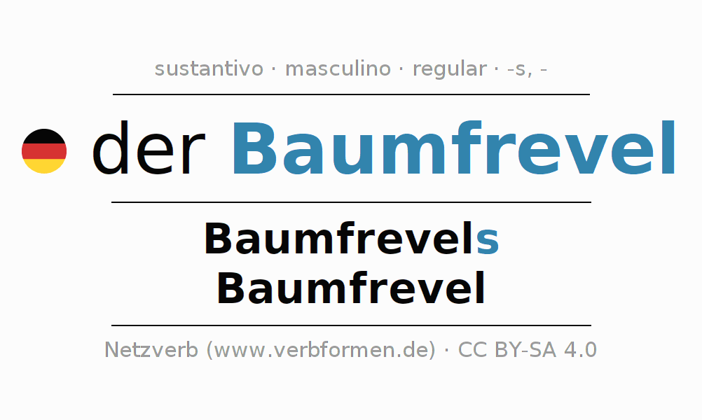 La declinación del sustantivoBaumfrevel (daño a árboles, destrucción de árboles) se encuentra en genitivoBaumfrevels del singular y en el nominativoBaumfrevel del plural. El sustantivo Baumfrevel se conjuga de forma fuerte (irregular) con estas terminaciones s/-. El género gramatical de Baumfrevel es masculino y por eso se requiere el artículo definido ‘der’. Aquí puedes declinar no solamente Baumfrevel sino también todos los sustantivos alemanes . Comentarios ☆